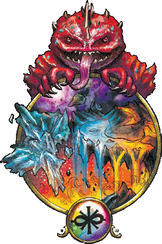 Kythri: The Churning Chaos It’s hard to keep a consistent rhythm in Kythri. It takes effort to maintain any pattern of behavior; without even thinking about it, people in Kythri adjust their behavior to avoid repetition. This is the essence of Kythri. On the one hand it’s a vision of chaos, but it’s also about change, adapting to overcome the unexpected, and challenging traditions. Kythri is commonly imagined as utterly unstable, with landscapes taking shape only to boil away within moments. And this is true of the heart of the realm, known as the Sea of Chaos. But at the edges of the sea, there are islands that linger. The environments of these Shifting Islands steadily and constantly change; a vast desert might be a lush rainforest in a few hours. But the land itself remains constant, and creatures can live on these islands, adapting to the endlessly changing environment. While Kythri constantly changes, its elements are usually natural. A jungle becomes a desert, a blizzard becomes a sandstorm—but it’s comprised of sand, not tiny marble busts of King Boranel. This distinguishes Kythri from Xoriat or Dal Quor; while constantly changing, it’s generally change between plausible options, unlike the unreal environments of the Realm of Madness and the Region of Dreams. Universal Properties All things change in Kythri, even time and the future. The only thing that’s truly reliable is that nothing’s reliable. Broken Rhythms. A creature can’t take the exact same action on two consecutive turns. If it previously stood still, it must move. If it previously moved, it can stand still or move a different distance. A creature can cast a spell in two consecutive turns, but it can’t be the same spell. A creature can attack on two consecutive turns, but the second attack must be described as substantially different in style from the one before. Fluid in Form. When a creature casts a transmutation spell, its range is doubled; if it has a duration of at least 1 minute but less than 24 hours, the duration is doubled. Embrace the Unknown. In order to cast a divination spell of 1st level or higher, a creature must succeed on a spellcasting ability check with a DC equal to 12 + the level of the spell. On a failed check, the spell is not cast and its spell slot is not expended, but the action is lost. Divination spells cast on other planes can’t affect or target creatures, places, or objects on Kythri. The Odds Are Odd. If the d20 roll for an attack is a 1 or a 2, the attack misses regardless of any modifiers or the target’s AC. If the d20 roll for an attack is a 19 or 20, the attack hits regardless of any modifiers or the target’s AC, and is considered a critical hit. If a creature has an ability or item that increases its normal range of critical hits—such as the Champion fighter’s Improved Critical—its range increases by 1. Constant Change. Nothing remains exactly the same in Kythri. Whenever a creature finishes a short or long rest, it finds that something changed about it or its possessions. Each player should describe what’s changed about their character; this could be as simple as your cloak changing color or your sword now having a stylish Aundairian design when it was originally Karrnathi. You could choose for the change to be physical—your skin, hairstyle, or sex—or mental—you suddenly hate olives or no longer believe in the Sovereign Host. These changes have no mechanical impact: the coins in your pocket may change in design, but copper coins won’t turn into platinum. If you want a change to have mechanical impact—for example, if your cleric’s faith or race changes and you want your character sheet to reflect that—discuss the possibility with your DM. Chaotic Time. Time is fluid in Kythri, inconsistent both with the Material Plane and within its own islands. Adventurers who spend a day in Kythri could find that a year has passed in Eberron, or they could be trapped in Kythri for a year and find that only an hour has passed when they return. Denizens Most of Kythri’s denizens fall into one of three categories. Wild Things The islands of Kythri are inhabited. But how can a creature survive in an environment that can be a desert today and a glacier tomorrow? The answer, of course, is that the creature must change with the environment. Kythri’s islands include some creatures that appear to be natural beasts, though they change as the region around them does; the wolf in the forest becomes an arctic wolf when the land turns into a glacier, and turns into a jackal when it’s a desert. Even beyond their practical changes for survival, Kythrian creatures might be constantly shifting their plumage, behavior, and more fundamental biology, whether from moment to moment or day to day. However, not all of Kythri’s wild things transform into familiar forms. Part of the plane’s core concept is evolving in response to change, and Kythri is home to many creatures that blend the features of two or more natural beasts: monstrosities such as the owlbear, griffon, and chimera. It’s commonly accepted that at least some of these monstrosities first appeared in Kythri, and that they first appeared in Eberron either by passing through portals or due to the influence of manifest zones. Just as the environments of Kythri are chaotic but largely blend natural elements, Kythrian monstrosities typically blend the forms of natural creatures. While there are hippogriffs and griffons in Kythri, inherently alien creatures like kruthiks and gricks aren’t found here. The wild things of Kythri also include natural shapechangers, notably a wide variety of mimics—even colossal ones that can assume the shape of natural features such as hills or mountains. It’s quite likely the mimics of Eberron either immigrated from Kythri or were created by its influence, much like the sahuagin of the Eternal Dominion use the blood of the kar’lassa bound to Kythri to create their plasmi