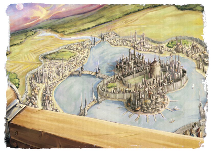 Construit de part et d'autre de la Rivière Hurlante, à l'endroit où celle-ci s'élargit, le siège ancestral des souverains de Brelande séduit les visiteurs par ses avenues bordées d'arbres, ses élégants ponts-levis, sa propreté et son atmosphère décontractée. Perché sur un îlot rocheux au milieu de la rivière, entouré de quais et de casernes militaires, se trouve le Château de la Lame Brisée, la forteresse austère du roi. Contrastant avec son air accueillant, Wroat projette des ombres sombres, et beaucoup de choses se déroulent silencieusement derrière des portes closes. L'absence de mendiants et de racaille dans les rues pourrait également laisser penser que Wroat joue sur les apparences. Les Lanternes Sourdes du Roi sont toujours vigilantes ici, et les nouveaux venus qui tentent de se comporter mal ont tendance à disparaître rapidement et sans même murmurer.